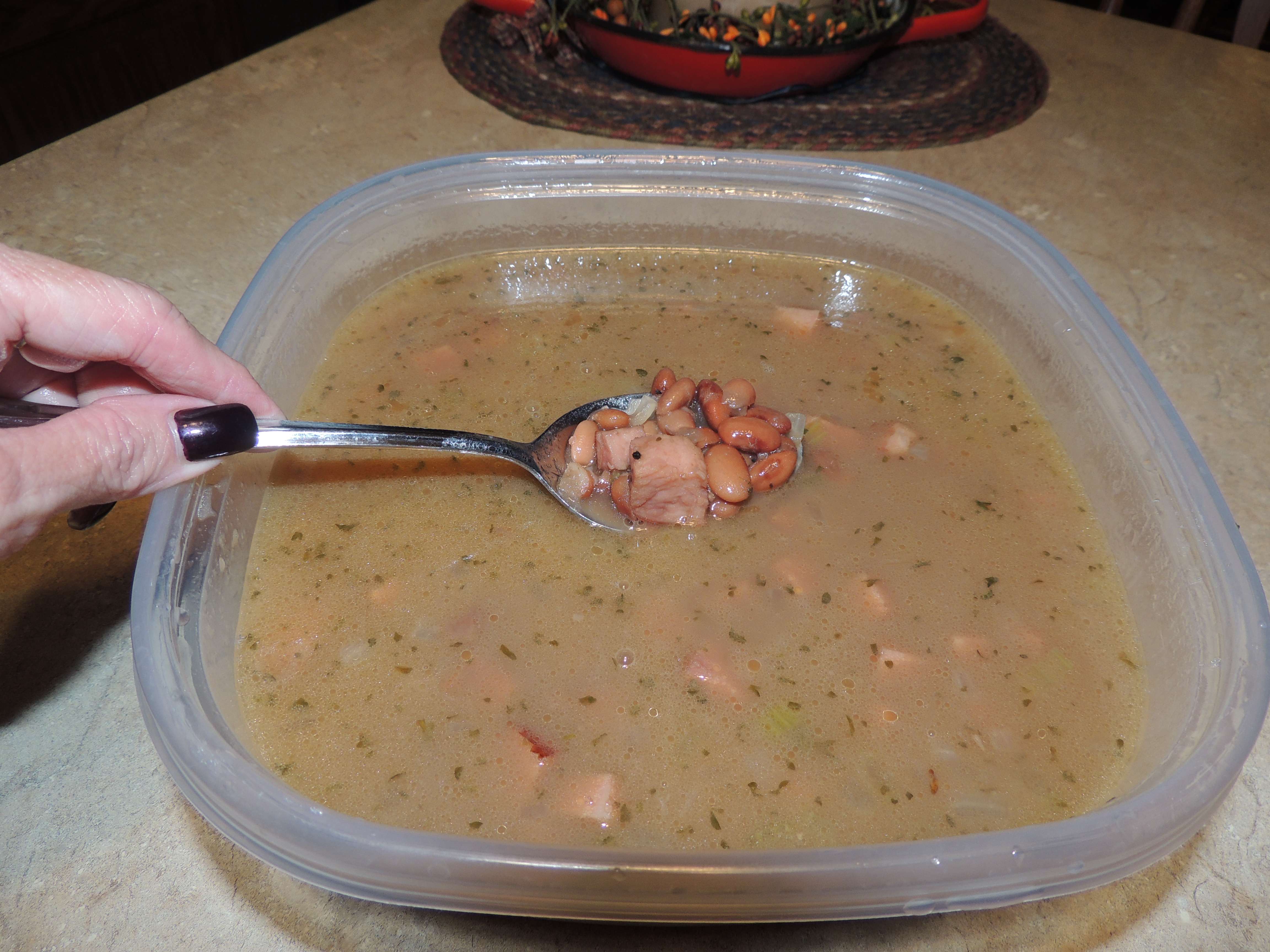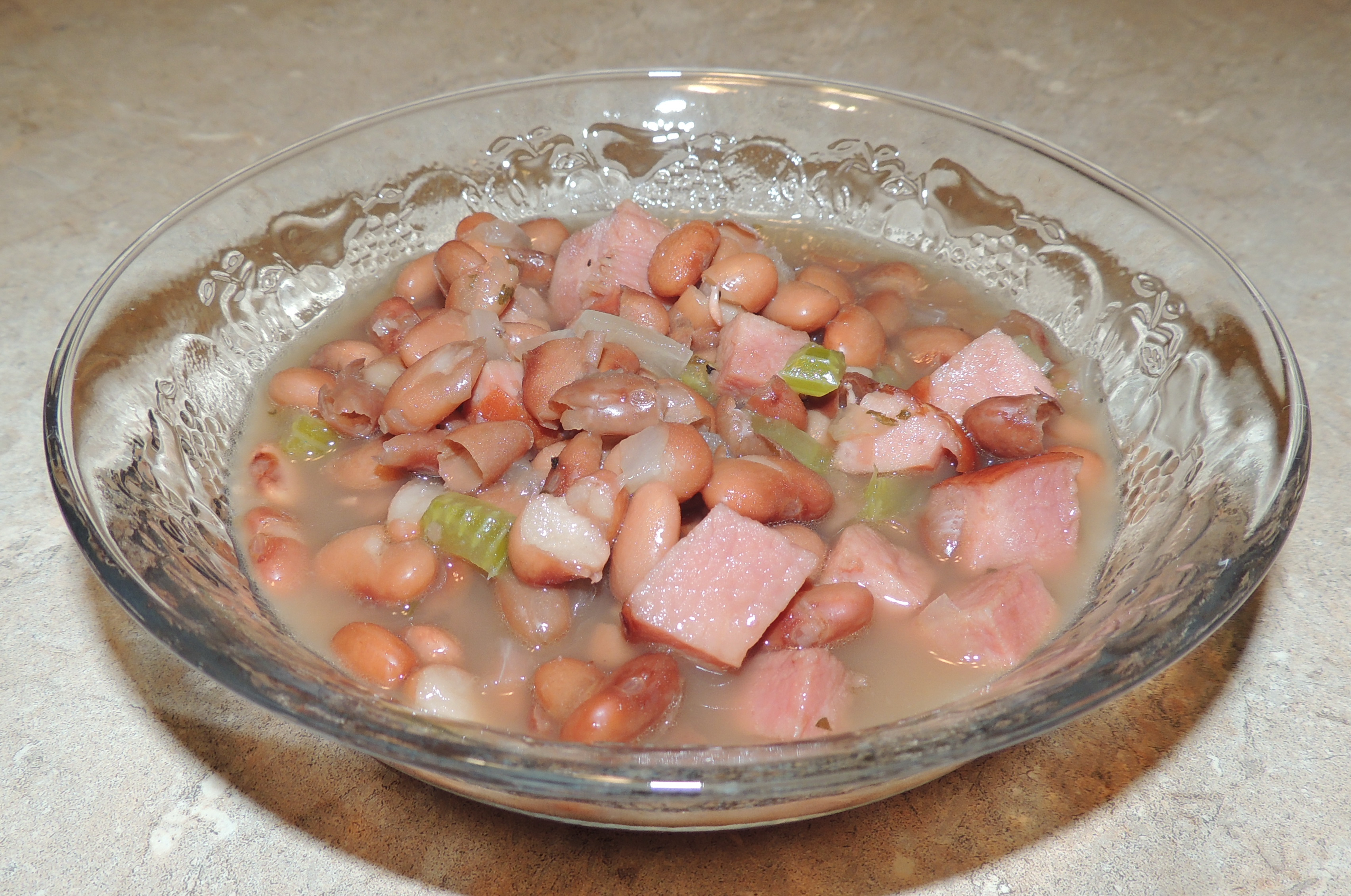 Place beans and cubed ham into stockpot, make sure they are completely covered with water add additional water, if necessary, cover the beans and ham cook on high for 10 minutes. Reduce heat to simmer add in onions and celery – continue to cook and stirring occasionally for 2-2-1/2 hours – check beans to make sure they are fully softened – if not cook a little longer. Keep an eye on your broth if it begins to reduce, add a bit more water so that beans remain submerged during cooking time. Remove ham bone from pot; remove any ham meat from bone and add the ham back into the pot – discard the bone. Do a test taste – Season with additional ham base and pepper if needed. The broth will thicken slightly as the amount of water reduces through the long cooking times.