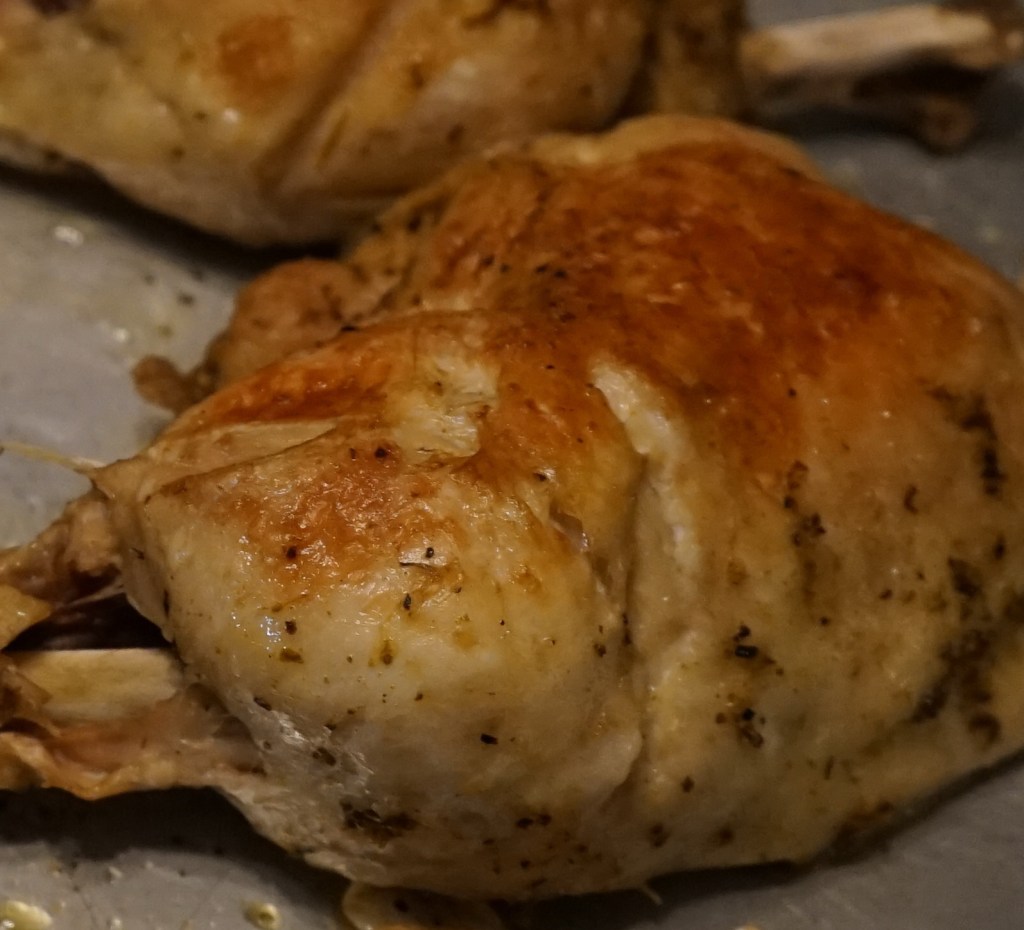 Rub olive oil on the inside of your chicken add the seasonings on the inside – rub them in, once the inside is done – do the same to the outside – I even lift the skin rub olive oil and seasonings under the skin as much as I can.