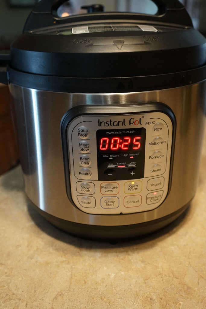Close your lid and steam valve and set to high pressure for 25 minutes. Allow to naturally release.