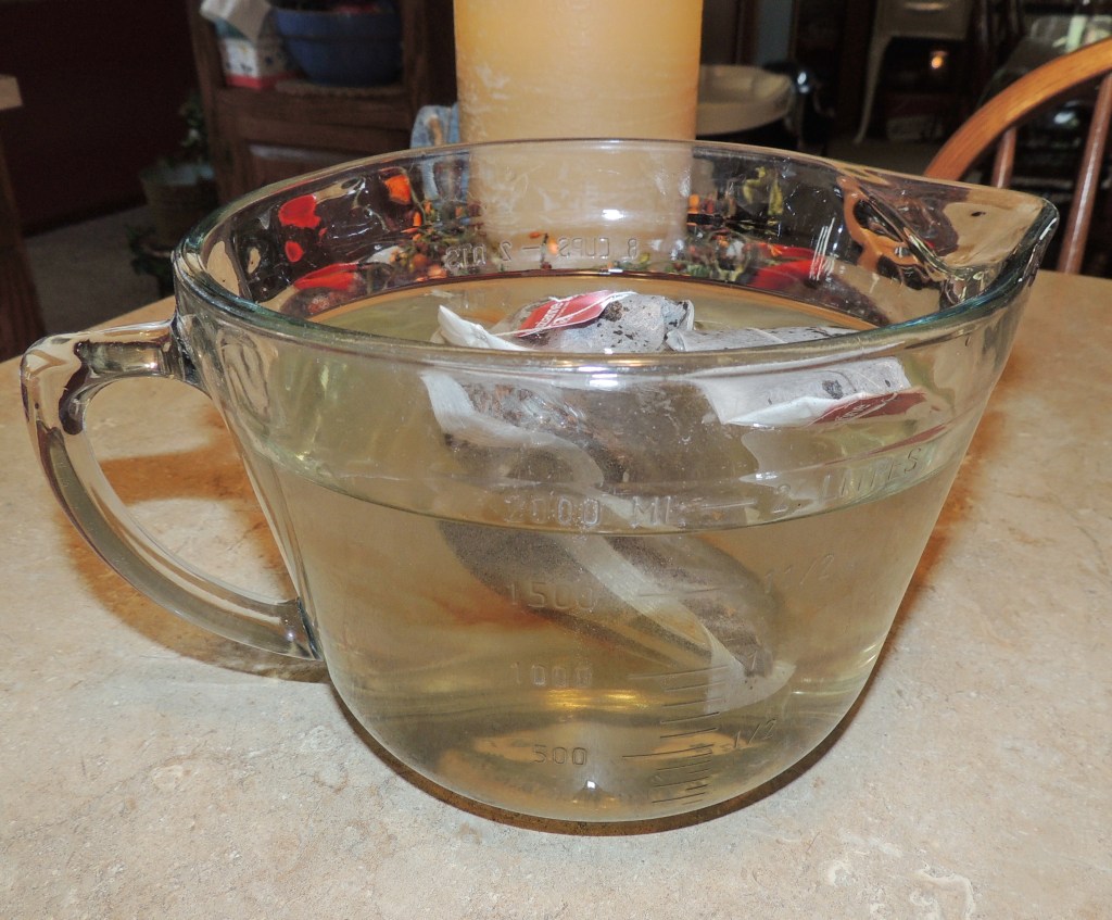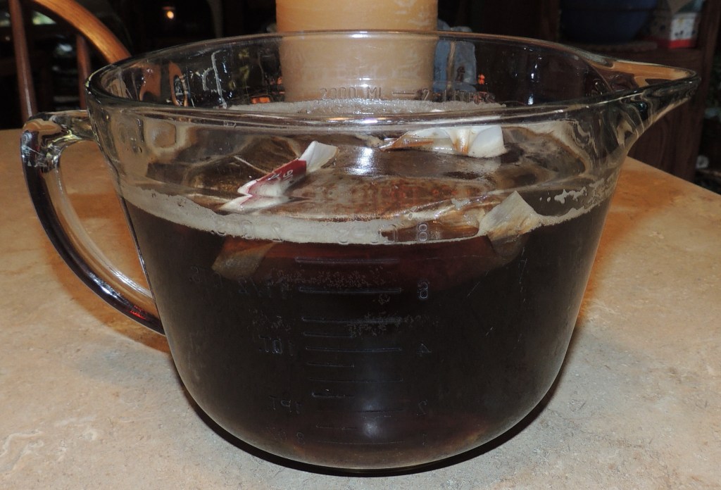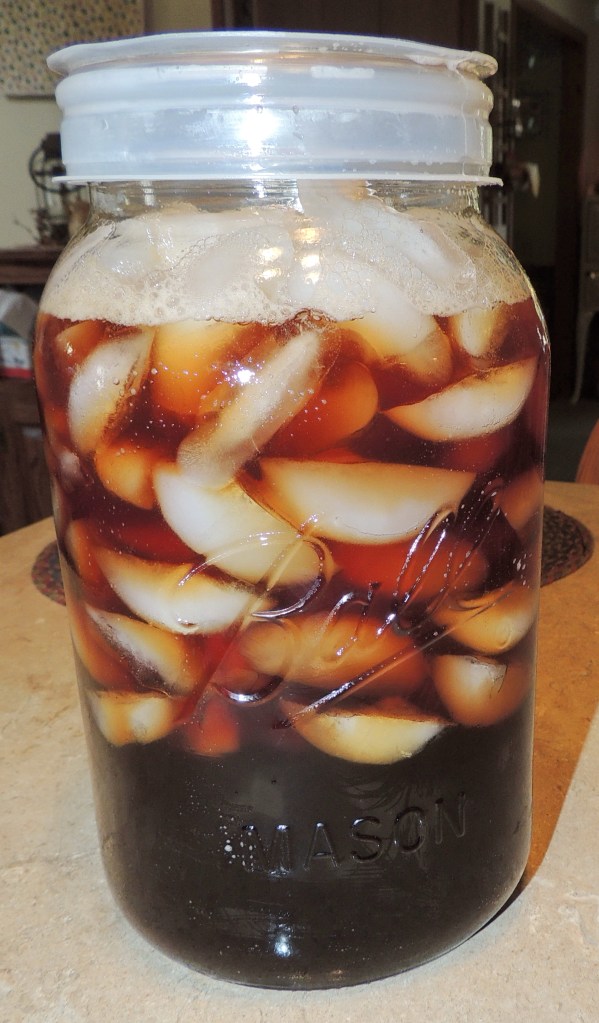 NOTE: IMPORTANT – DO NOT USE A GLASS PITCHER WHEN MIXING – HOT WATER AND ICE AND GLASS DO NOT MIX – IT MAY CRACK….I use a Gallon Canning Jar or my Tupperware Pitcher.