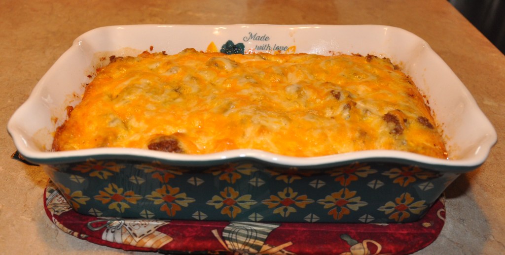 As I stated above – I use 2lbs. of Sausage – I like to mix Hot and Regular for a slightly spicy flavor! I also use two pounds and split it – 1/2 for the casserole and the other half for sausage gravy.