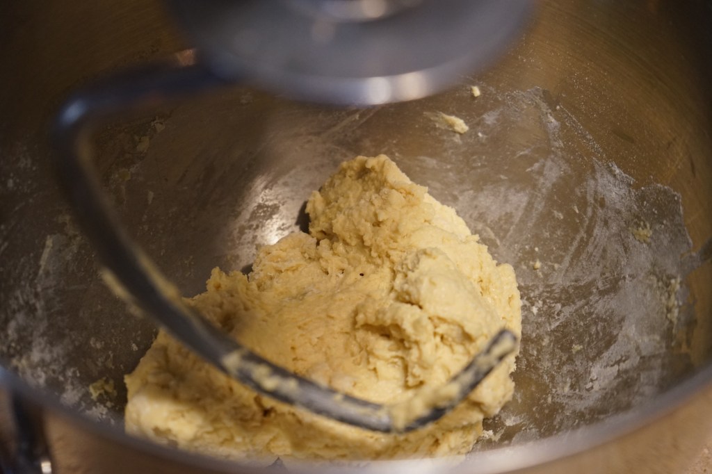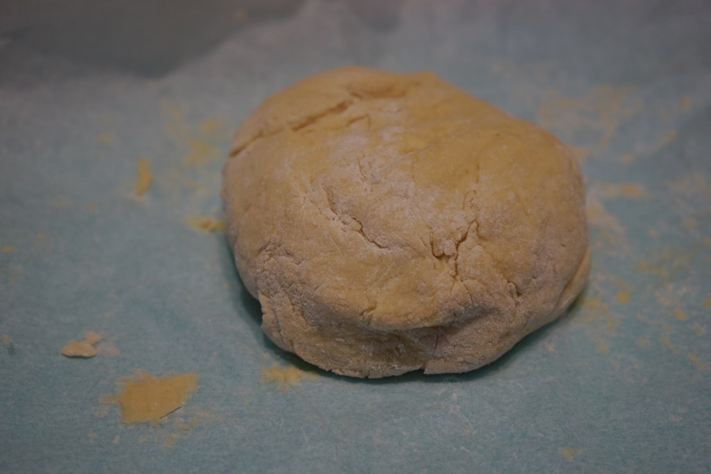 In a large bowl, mix flour and salt. Set aside. In a small bowl, whisk eggs until fluffy, add in milk mixing to combine. To the flour mixture add butter and the egg/milk mixture. Stir with a fork to combine and then knead with your hands. Knead dough on a floured surface adding more flour if dough is sticky – adding a little bit at a time. Continue kneading about 5 minutes or until smooth.
